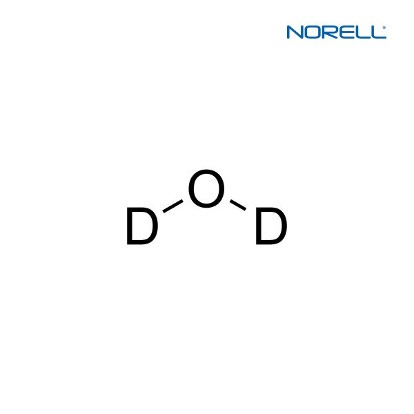 Deuterium Oxide, 25 grams. This is deuterated water (heavy water) where hydrogen atoms have been replaced with deuterium isotopes, commonly used as a solvent in NMR spectroscopy and other analytical applications requiring isotopically labeled compounds.