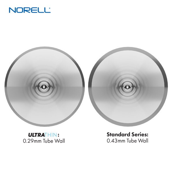 The 5 mm tubes feature a 0.29 mm wall thickness, reduced from the STANDARD SERIES 0.43 mm, while the 10 mm tubes are reduced to 0.42 mm from 0.59 mm.